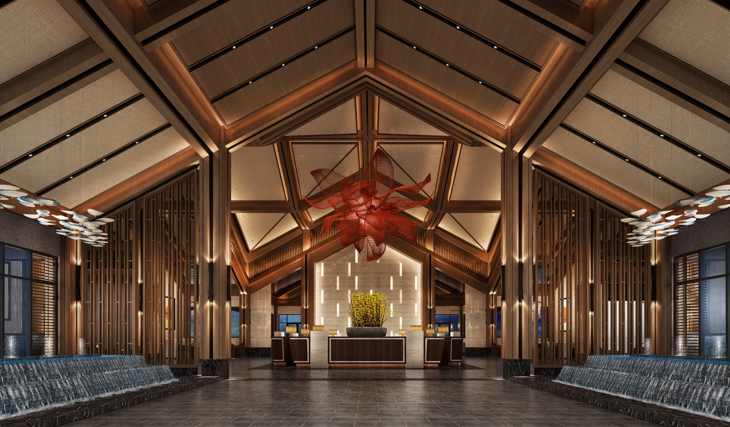作為森林公園的游客服務(wù)中心,是我們整個(gè)景區(qū)的“會(huì)客廳”充分體現(xiàn)"太平湖森林公園”秉承的“木—花—水—人居”理念為整個(gè)室內(nèi)設(shè)計(jì)主軸。以“木”為形,以“花”為介,以“水”為魂;以“人”為本。